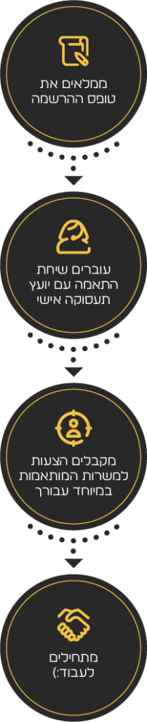 אנחנו מאמינים שלכל אדם מגיעה הזדמנות אמיתית לממש את הפוטנציאל שלו, ולכן אנחנו בונים עבורך מסלול מותאם אישית - בין אם אתה מחפש עבודה מיידית, מסלול קריירה עם הכשרה מקצועית, או שינוי תחום.